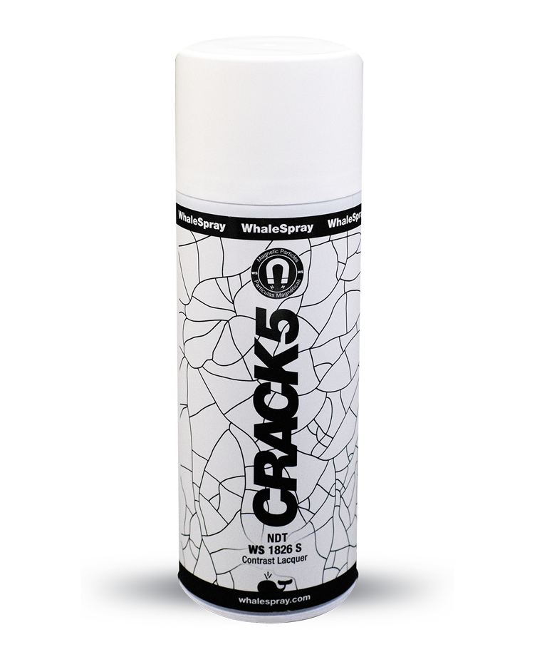 Contrast lacquer aerosol that is applied to a dark surface, turning it white to provide greater contrast when applying the WS 1825 S Crack 4 Black Magnetic Particles product, when performing an NDT for crack detection using a magnetic field.
