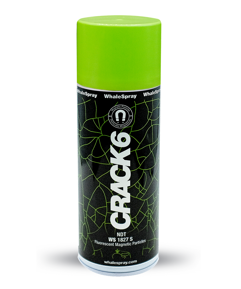 Fluorescent particle aerosol for application to a part undergoing NDT using a magnetic field and ultraviolet light. Due to the very small particle size and the UV light the detection capability is high. The particles are concentrated in the fissure by interrupting the magnetic field and are detected at first glance with UV light.