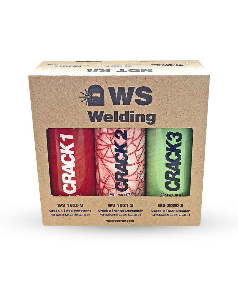 Kit containing the 3 aerosols to perform NDT using penetrating liquids complying with ASTM E-165 specifications.